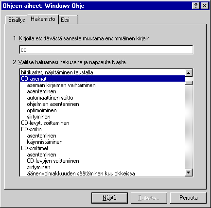 Näistä tärkein ja hyödyllisin on Hakemisto. Tällöin hakukenttään