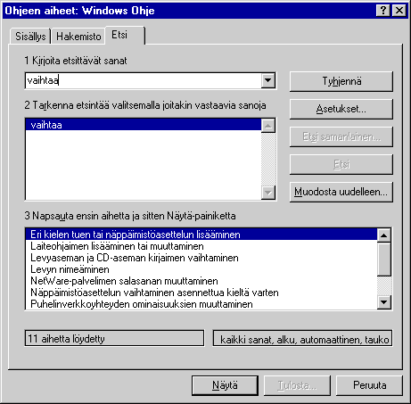 tulee siis paljon enemmän kuin Hakemisto-välilehdestä.