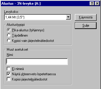 jolloin levykkeestä tulee ns. käynnistyslevyke (jargonia: