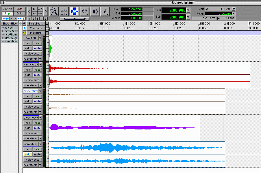 Traditionally digital reverbs have been accomplished with DSP algorithms, usually a series of allpass and comb filters. Additionally, 3D-audio simulations have used convolution with HRTF (Head Related Transfer Function) to approximate placing of a sound source. Another, and less known method, is to use convolution: one signal is analyzed and its spectra is applied to a second signal, a blend or a morph. There are various applications for convolution, both useful and esoteric, and we'll look at some here.